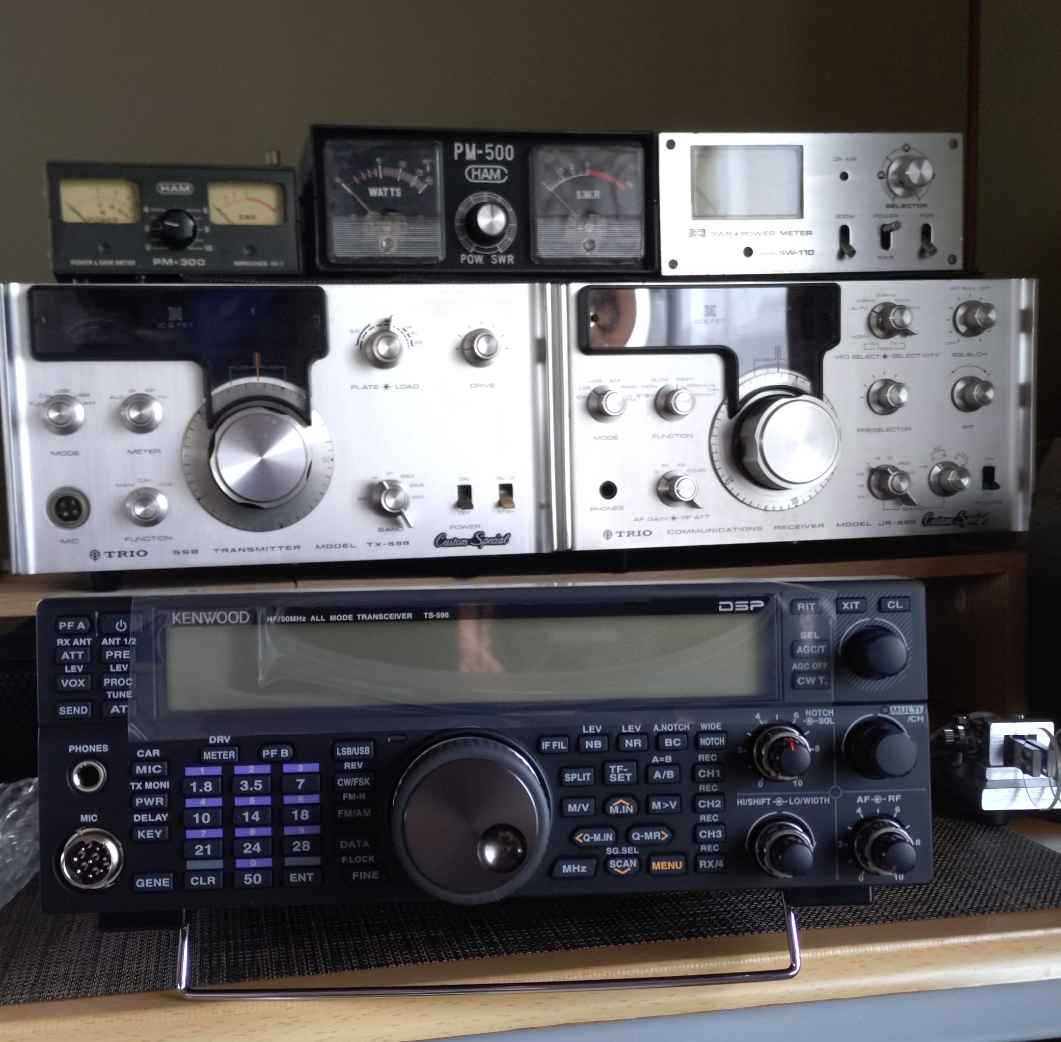 以前に入手していた599ラインに加えて、TS-590を配置すると、TORIOからKENWOODにブランドは変わりましたが、時代の流れを感じさせてくれます。当面、使用する予定はないので、元箱に戻し保管することにします。中古品ですが、未使用品ですので少し落ち着いたら、あらためて届も出して電波を出したいと考えています。